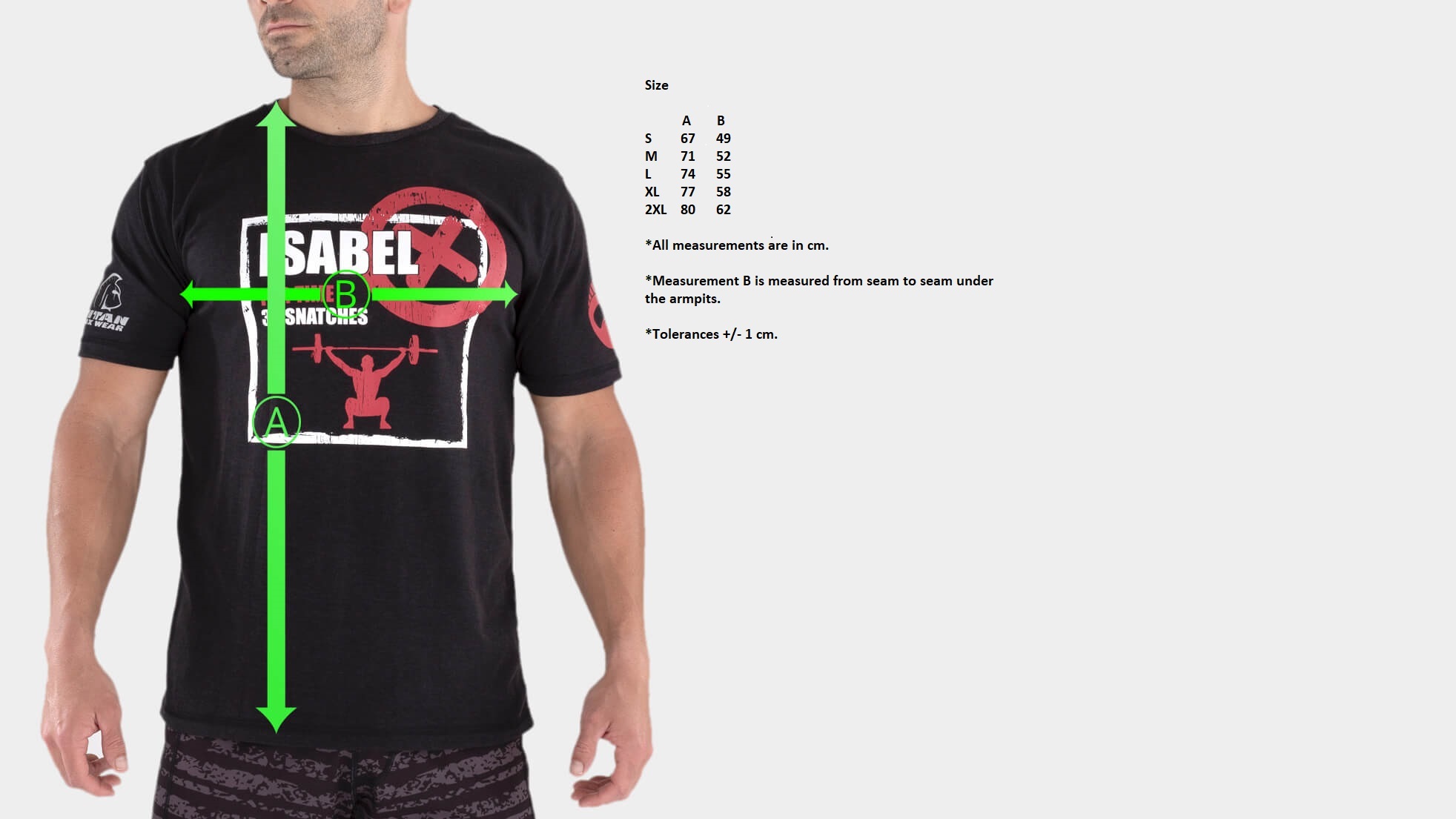 *Measurement B is measured from seam to seam under the armpits.