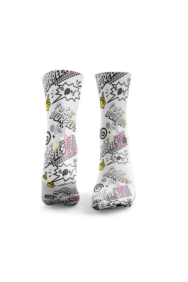 Sports socks Crew F Burpees White-HEXXEE