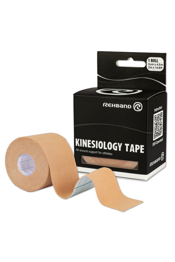 Кинезиологичната лента Rehband Rx е изработена от 100% щадящ кожата памук, който е еластичен и устойчив на вода и пот. Дишащата спортна кинезиологична лента е покрита със силно залепващо лепило без цинк и латекс. Лентата се адаптира оптимално към движенията по време на спортни дейности и се поставя лесно. Лентата се използва за стабилизиране на мускули, връзки и стави. Лентата е удобна за кожата и издръжлива. Перфектен за използване в състезателни и развлекателни спортове.
